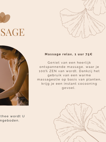 We werken samen met Laurene die massages geeft. Dit kan op afspraak, 1 uur aan 75 euro.